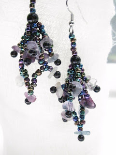 Tomorrow, I am visiting a local shop. I'm going to buy some skulls she has to expand my goth selection. I hope to have them posted soon. So, until then, I have this piece to share. It's made of black rainbow seed beads and rainbow flourite. I love that it looks black until you get close up to it.
